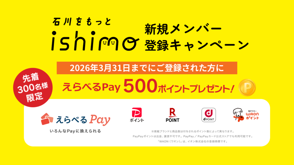 2026年3月までに新規メンバー登録してくださった方限定!メンバー登録&キャンペーン応募をしてくれた先着300名様に「えらべるPay」500ポイントをプレゼント!