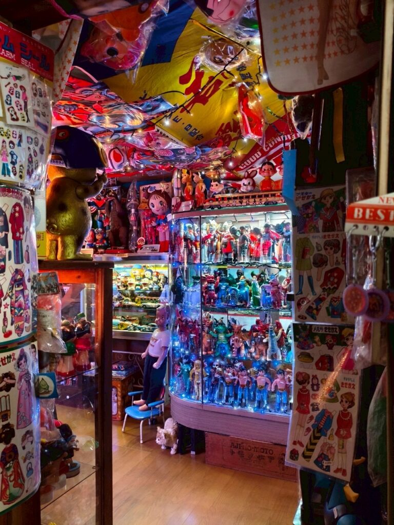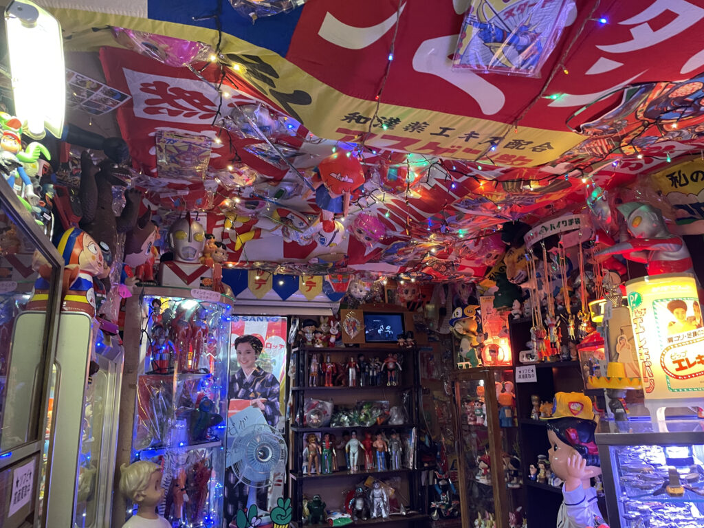 金沢昭和迷宮館は、館長の辰己正之さんが長年集め続けた昭和レトロの宝庫です。2024年3月に金沢市新竪町から森山(現在地)に移転しました。新店舗はなんと、築125年の古民家を辰己さんが自ら大改造したものだそうです。店内にはソフビ人形やレトロ雑貨などが所狭しと並べられており、見ているだけで異世界にいるようなワクワクした気分になりました。