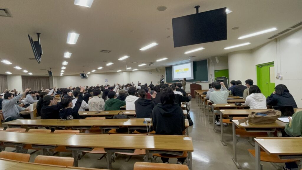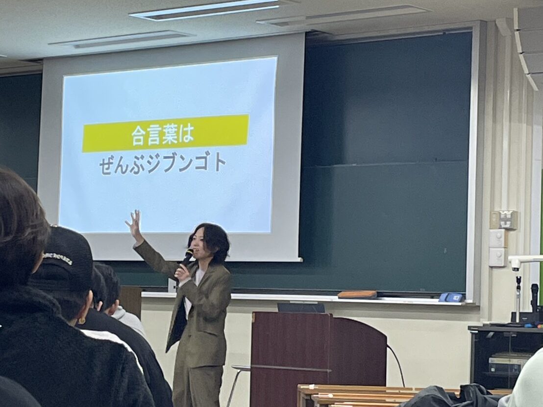 さらに、今後、カナコンをどうしていきたいかについても教えていただきました。北陸大学だけでなく、他の大学でも開催したいとお話しされていました。「夢を持ってほしい」わけではなく、「こんな仕事があるんだ」と知ったり、自分事で考えることで何かのきっかけになったりすれば嬉しいとおっしゃっていました。なんとなくな気持ちで就職先を決めてやめてしまうことがないように、自分に合った仕事選びの助けにもなりたいとおっしゃっていました。